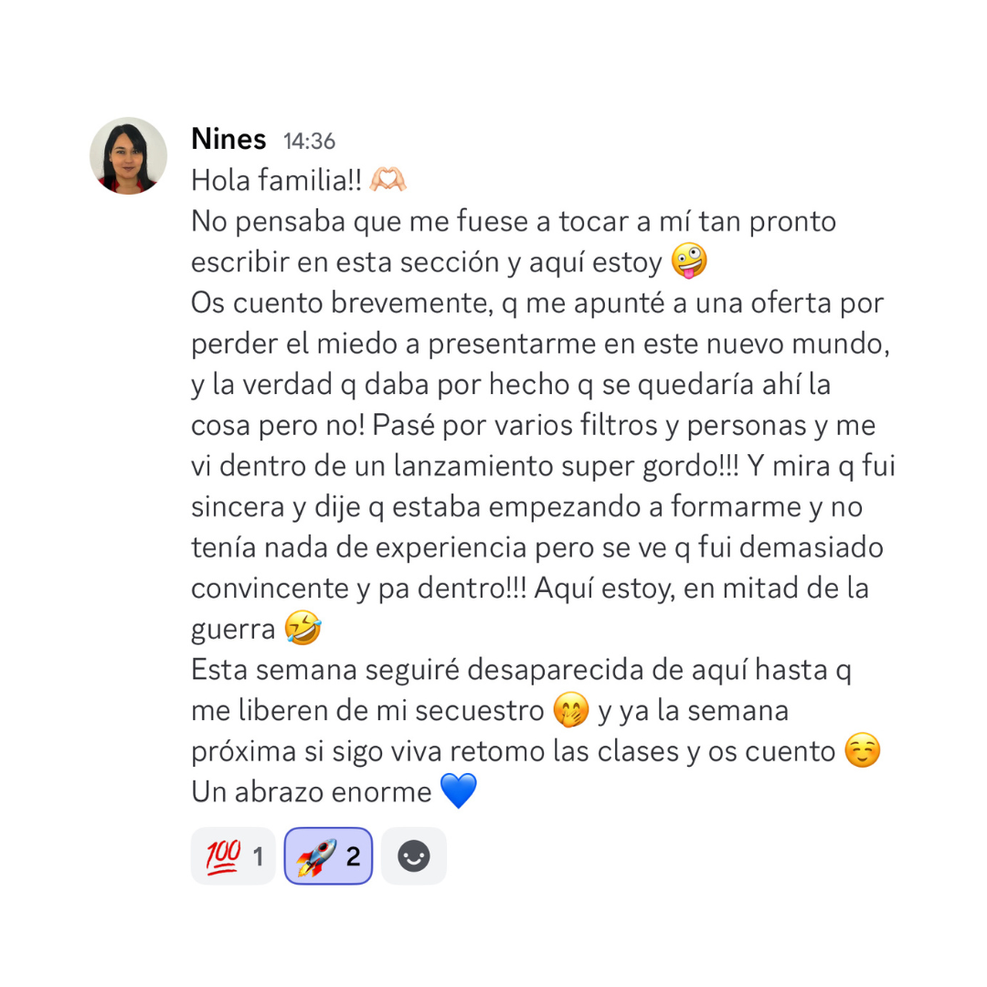 Accede a la comunidad privada de la academia con referentes de cada área formativa y compañeros con tus mismos objetivos